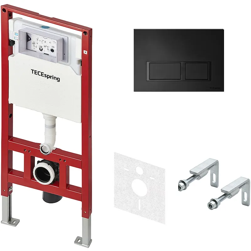 Инсталляция Tece Spring S955204 для унитаза.Характеристики:Инсталляция: Цвет: красный. Материал: сталь. Размеры (ШхВхГ): 506х1144х260 мм. Объем бачка 6 л. Настраиваемый объем малого смыва-от 2 до 5 л, большого-от 4 до 6 л. Монтаж заливного вентиля сверху или сзади бачка. Минимальная глубина установки 165 мм. Модуль выдерживает нагрузку более 400 кг. Универсальный модуль для всех типов подвесных унитазов. Расстояние между шпильками: 180/230 мм. Выдвижные опоры регулируемые: 0 - 200 мм. Несмотря на компактные размеры окна для установки панели смыва, бачок удобен в обслуживании. Клавиша смыва: Цвет: черный матовый. Материал: пластик. Размеры (ШхВхГ): 245х165х8 мм. Режим слива воды: две кнопки (режим эконом). Управление: механическое. В комплекте поставки: Застенный модуль. Клавиша смыва. Комплект крепежных элементов для установки модуля. Прокладка звукоизоляционная для унитаза. Фановый отвод для подключения к канализации DN110.