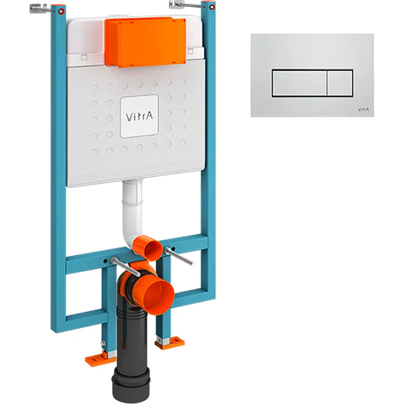 Инсталляция Vitra Core 800-1875 для унитаза с клавишей смыва Хром глянцевый.Характеристики:Инсталляция: Цвет рамы: синий. Материал: сталь. Покрытие рамы: краска методом порошкового напыления. Размеры (ШхВхГ): 540х1270х80 мм. Объем смыва: 3/6 л. Подвод воды: сверху бачка. Диаметр слива: 90 мм. Легкая регулировка ножек рамы по высоте: от 0 до 150. Межосевое расстояние для монтажа унитаза 180/230 мм. Выдерживают нагрузку до 500 кг. Монтаж: в капитальную стену и в пол. Клавиша смыва: Цвет: хром глянцевый. Материал: термоустойчивый пластик. Размеры (ШхВхД): 244х165х9 мм. Режим слива воды: две кнопки (режим эконом). Управление: механическое. В комплекте поставки: Инсталляция Vitra V-Fix Core 738-5800-01. Набор крепежей инсталляции к стене и полу. Набор крепежей унитазов к инсталляции. Набор патрубков и гофр. Шаровой запорный кран. Клавиша смыва Vitra Root S 740-2380. Инструкция.