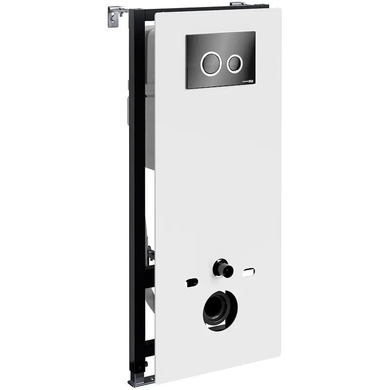 Инсталляция WasserKRAFT Abens 20TLT.010.ME.WH.PB01 для унитаза с Черной глянцевой клавишей смыва.Характеристики:Инсталляция: Цвет лицевой панели: белый. Материал: сталь, пластик. Габариты (ШхВхГ): 500х1160х185-315 мм. Съемная лицевая панель из закаленного стекла, толщиной 6 мм. Стальная конструкция по стандарту DIN 2392-2. Толщина стали 2 мм. Толщина стали несущей конструкции 4 мм. Толщина стали опорной конструкции 5 мм. Регулировка высоты и глубины монтажа. Антикоррозийное покрытие. Выдерживает до 400 кг. Надежная 6-точечная система крепления. WasserSchild. Защитная пленка лицевой панели. Литой бесшовный бачок. Противоконденсатная и шумопоглощающая EPS оболочка. Подключение воды сверху-сбоку. WasserSchonung. Экономичный смыв 3/6 л. WasserStrom. Регулируемый смыв 1,6 - 2,2 л/с. Декоративные заглушки в месте крепления унитаза устанавливаются после покраски, чтобы не повредить резьбу. Mонтажная планка с возможностью регулировки положения крепежа. Установка: в капитальную стену и в пол. Клавиша смыва: Цвет: черный глянцевый. Материал: ABS-пластик. Размеры (ШхВхГ): 246х164х19.5 мм. Режим слива воды: две кнопки (режим эконом). Управление: механическое. В комплекте поставки: Инсталляция. Рама для крепления стеклянных панелей E029. Съемная лицевая панель из закаленного стекла White E030. Фитинги для подачи и слива воды. Защитная шумоизоляционная накладка. Крепления для унитаза. WasserKit: набор быстрого монтажа. Клавиша смыва.