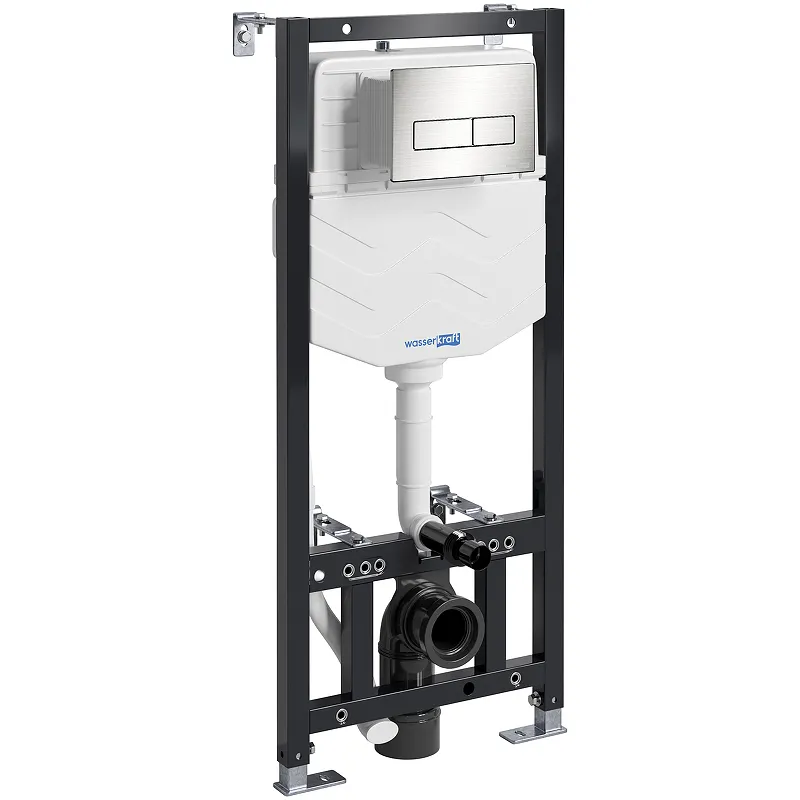 Инсталляция WasserKRAFT Aller 10TLT.010.ME.BN03 для унитаза.Характеристики:Инсталляция: Цвет рамы: черный. Материал: сталь, пластик. Габариты (ШхВхГ): 500х1360х325 мм. Стальная конструкция по стандарту DIN 2392-2. Толщина стали 2 мм. Регулировка высоты и глубины монтажа. Антикоррозийное покрытие. Максимальная нагрузка: 400 кг. Литой бесшовный бачок. Противоконденсатная и шумопоглощающая EPS оболочка. WasserSchonung. Экономичный смыв 3/6 л. WasserStrom. Регулируемый смыв 1,6 - 2,2 л/с. Возможность подключения умных унитазов или крышек для унитазов. Регулировка выноса фановой трубы. Подключение воды сверху-сбоку. Толщина стали несущей конструкции 4 мм. Толщина стали опорной конструкции 5 мм. Надежная 6-точечная система крепления. Декоративные заглушки в месте крепления унитаза устанавливаются после покраски, чтобы не повредить резьбу. Установка: в капитальную стену и в пол. Клавиша смыва: Цвет: никель. Материал: ABS-пластик. Размеры (ШхВхГ): 236х152х6 мм. Режим слива воды: две кнопки (режим эконом). Управление: механическое. В комплекте поставки: Инсталляция. Фитинги для подачи и слива воды. Защитная шумоизоляционная накладка. Крепления для унитаза. Выводы для воды (возможность подключения умных унитазов или крышек для унитазов). WasserKit: набор быстрого монтажа. Механическая клавиша смыва (никель).