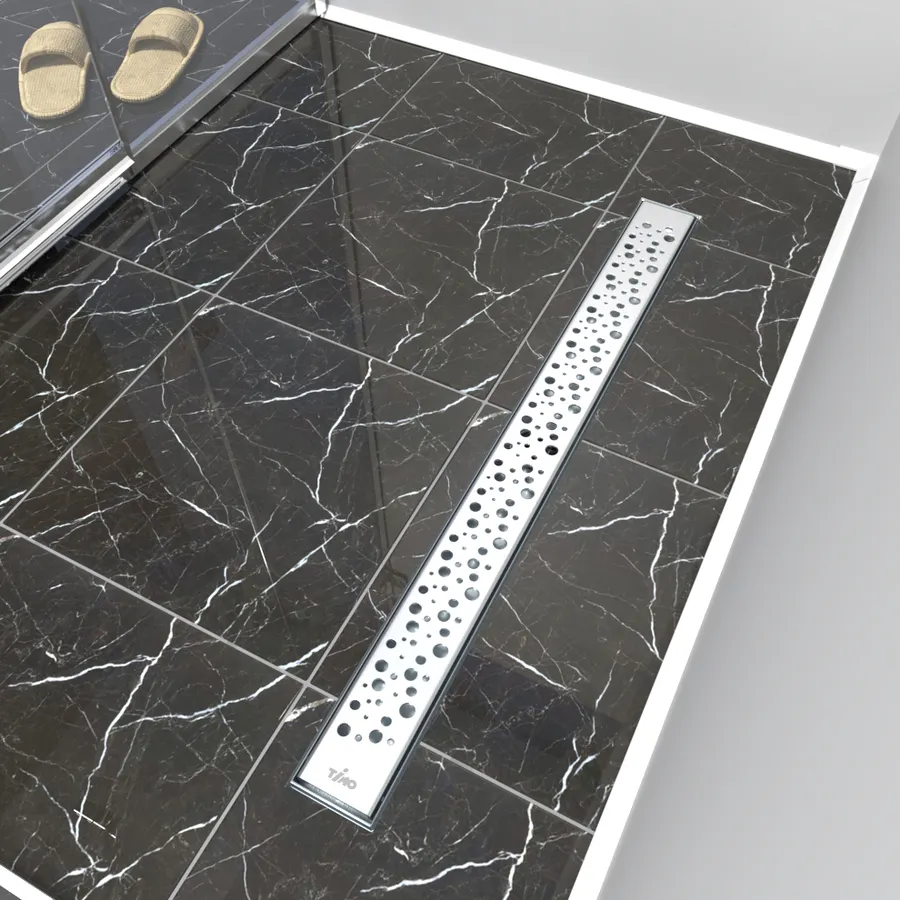 Комплект дренажного канала TIMO из нержавеющей стали и вставкой в него предназначен для создания безбарьерных душевых зон. Форма канала позволяет создать душевую зону вровень с полом, соблюдая однородный дизайн при этом добеспечивая беспрепятственный отвод воды, защиту от протечек и блокировку неприятных запахов. Производится из холоднокатанных листов нержавеющей стали группы аустенитов, марки 08Х18Н10 (AISI 304).Комплектуется комбинированным затвором, поворотным сифоном и монтажным комплектом с гидроизоляционной мембранной пленкой из полиуретана. Благодаря техническим решениям прост в установке и надежен. Минимальное количество швов, защищает от протечек. Сварка производится на современном оборудовании электронным лучом в активной среде смеси газов, обеспечивает высочайшее качество и долговечность швов. Форма и размерный ряд позволяет использовать канал в любом дизайн-проекте. Регулируется по высоте. Двойная защита от неприятных запахов.