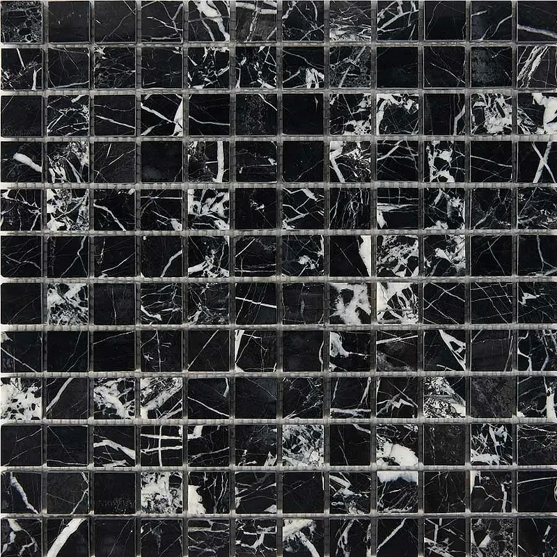 - Эстетичность и стиль: Черная каменная мозаика с рисунком под мрамор придаст вашему интерьеру современный и элегантный вид.