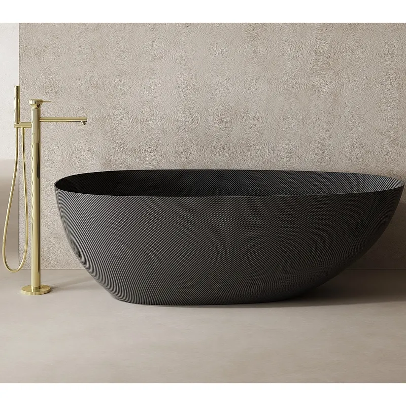 Карбоновая ванна Abber Karbon 170x80 AK9011-1.7.Характеристики: Цвет: черный. Материал: карбон. Размеры (ШхВхД): 800x550x1700 мм. Глубина чаши: 435 мм. Форма: овальная. Расположение слива: по центру. Диаметр сливного отверстия: 50 мм. Ориентация: универсальная. Установка: отдельностоящая. В комплекте поставки: Чаша ванны. Донный клапан.