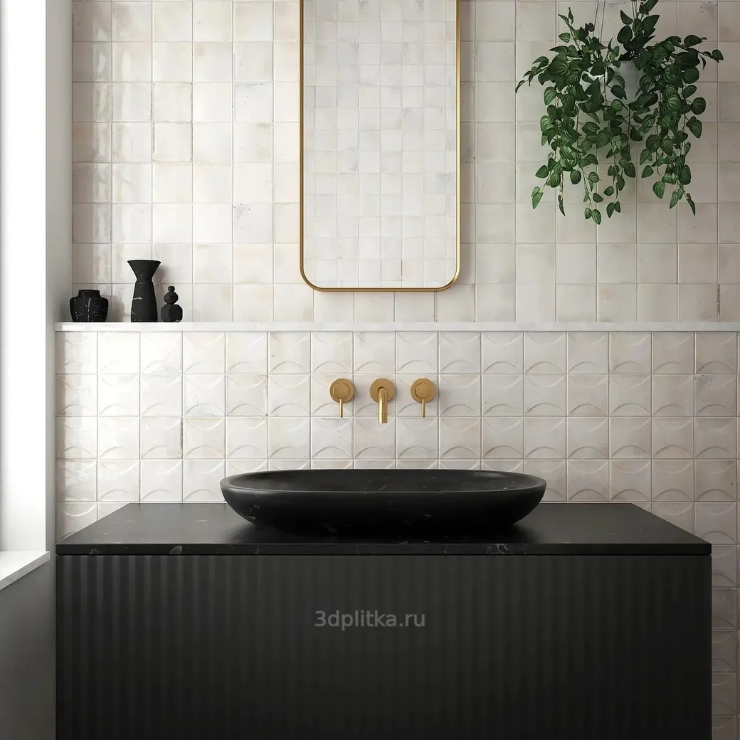 - Уникальный дизайн: Белая керамическая плитка с геометрическим рисунком под камень создаёт стильный и уютный интерьер.