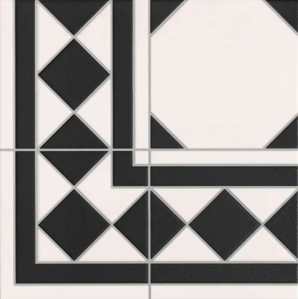 - Универсальный дизайн: Черная плитка с геометрическим рисунком подойдет для различных стилей интерьера.