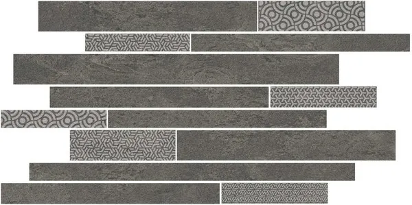 Керамический декор Kerama Marazzi Ламелла серый темный мозаичный SBM011\SG4585 25х50,2 см — идеальный выбор для оформления интерьера в стиле лофт. Декор выполнен в виде мозаики с геометрическим орнаментом, что делает его отличным решением для ванных комнат и кухонь. Матовая поверхность и стильное сочетание серых оттенков создают эффект кладки из сланца, придавая помещению изысканность и характер.