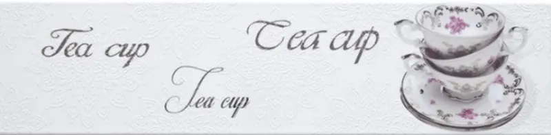 Керамический декор Monopole Ceramica Veronika Brillo Tea Cup Blanco 10х40 см включает изображение чайного сервиза из тончайшего фарфора и тематические надписи, что делает его идеальным для создания акцента на кухне.