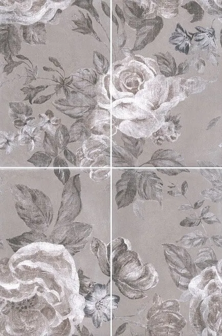 Керамическое панно Kerama Marazzi Александрия серый из 4 частей 40х60 см — идеальный выбор для создания стильного интерьера в ванной комнате. Декоративные элементы, выполненные в серо-бежевых тонах, прекрасно вписываются в любой дизайн. Панно стилизовано под мрамор и украшено цветочными принтами и геометрическими мотивами, что добавляет изысканности.