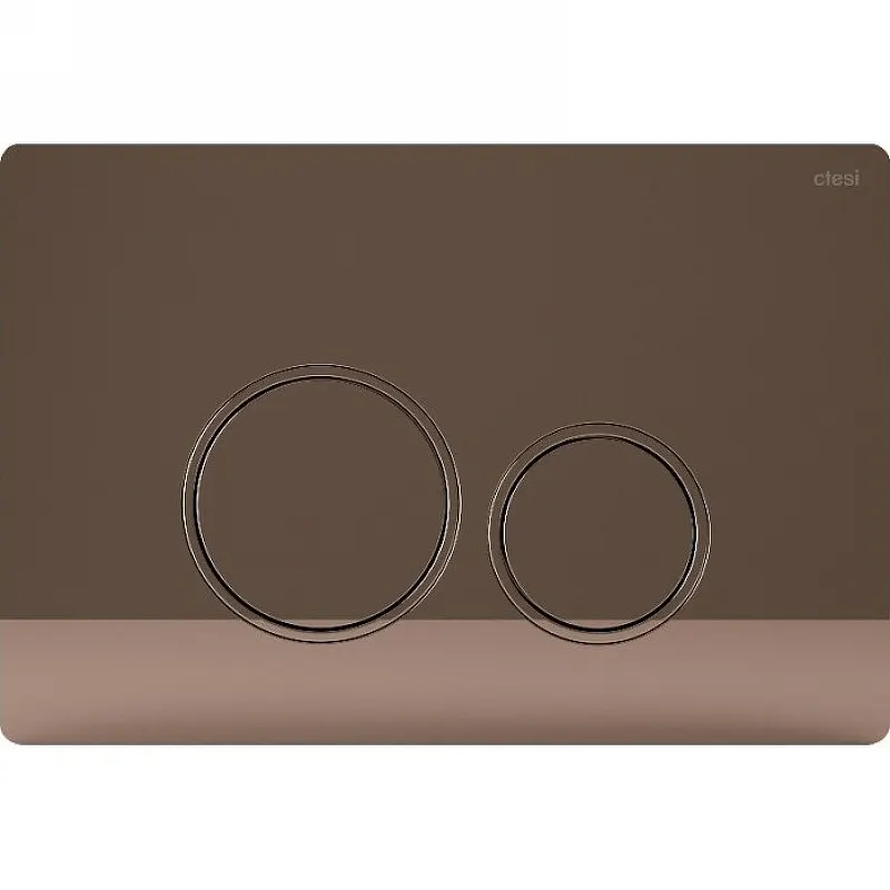 Клавиша смыва Ctesi Round BK0202129.Характеристики: Цвет: бронза. Материал: ABS-пластик. Размеры (ШхВхГ): 245х165х15 мм. Режим слива воды: две кнопки (режим эконом). Управление: механическое. В комплекте поставки: Клавиша смыва.