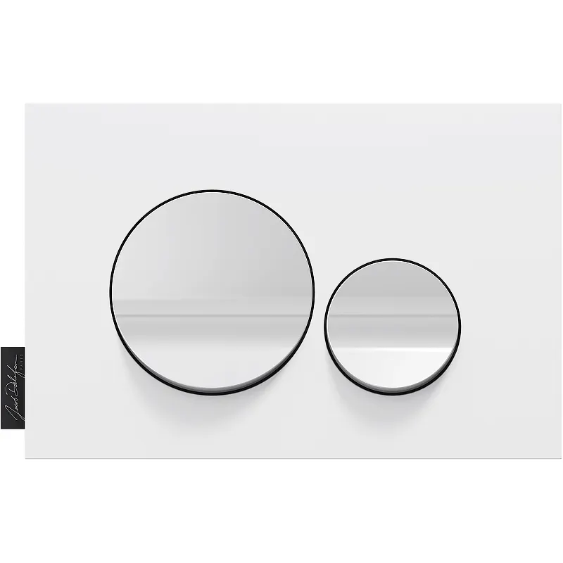 - Элегантный дизайн клавиши смыва: белая матовая и белая глянцевая отделка добавляют стиль.