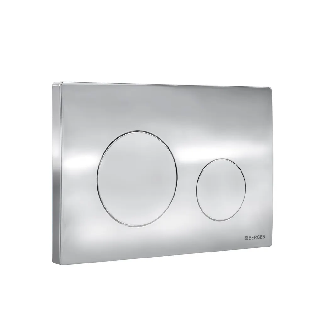 Двухрежимная кнопка BERGES для инсталляции ATOM 410 / ATOM 500 из ударопрочного ABS пластика. Управление механическое. Материал изделия: ABS пластик