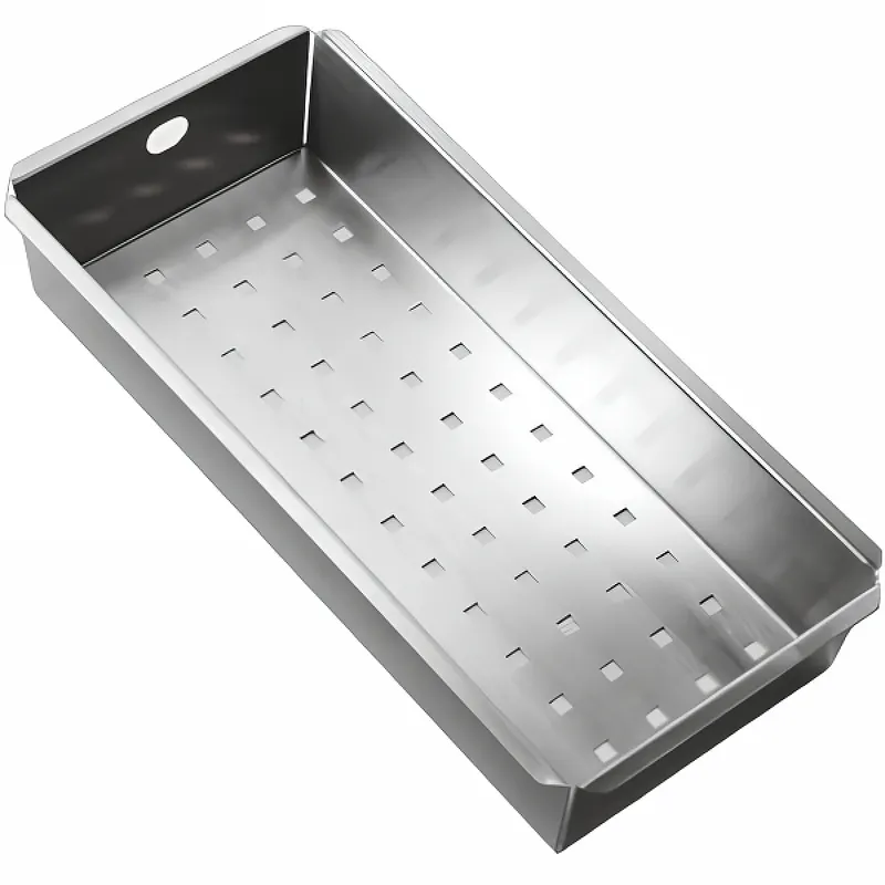 Коландер Alveus 1119835.Характеристики: Цвет: сатинированная сталь. Материал: нержавеющая сталь 304. Габариты (ШхВхД): 190х72х420 мм. Обработка поверхности: SAT. Форма: прямоугольная. Монтаж: на кухонную мойку. В комплекте поставки: коландер.
