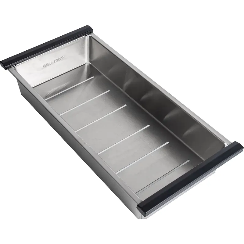 Коландер Paulmark Advance A430-BS на кухонную мойку.Характеристики: Цвет: брашированная сталь. Материал: нержавеющая сталь ASIS 304. Габариты (ШхВхД): 205х70х430 мм. Форма: прямоугольная. Монтаж: на кухонную мойку. В комплекте поставки: коландер.