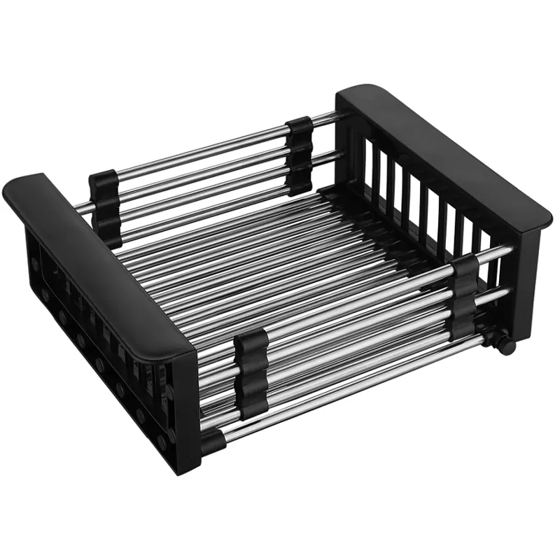 Коландер Ростовская Мануфактура Сантехники KSBL-01 раздвижной.Характеристики: Цвет: черный. Материал: нержавеющая сталь, пластик. Поверхность: матовая. Габариты (ШхВхД): 448х80х230 мм. Максимальная ширина: 448 мм. Минимальная ширина: 336 мм. Форма: прямоугольная. Монтаж: на кухонную мойку. В комплекте поставки: Коландер.