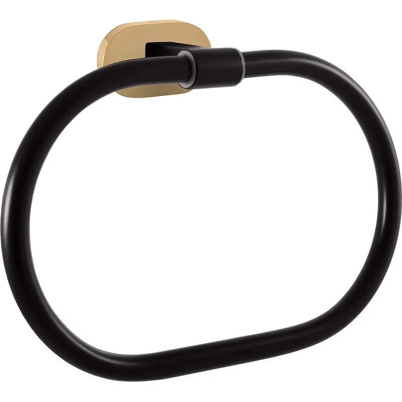 Кольцо для полотенец Rav Slezak Yukon YUA0104CMATZ.Характеристики: Цвет: черный матовый, золото. Материал: латунь. Поверхность: матовая, глянцевая. Форма розетки: овальная. Монтаж: настенный. Размер (ШхВхГ): 210х153,5х59,8 мм. В комплекте поставки: Кольцо для полотенец.