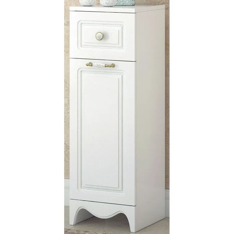 Комод Corozo Классика 30 SD-00000336.Характеристики: Цвет: белый. Габариты (ШхВхГ): 30,5x85x30,5 см. Материал корпуса и фасада: МДФ. Покрытие корпуса и фасада: эмаль, глянцевое. Фасады: с фрезеровкой. С распашной дверцей и выдвижным ящиком. Цвет фурнитуры: бронза. Монтаж: напольный. В комплекте поставки: Комод. Полочки. Механизм доводчика.