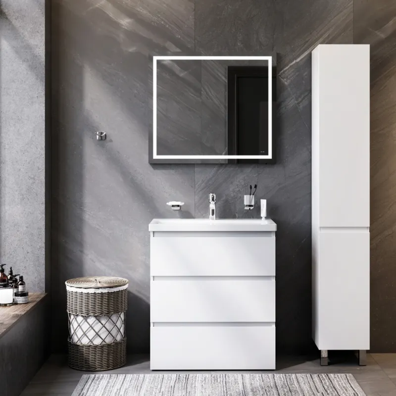 Комплект мебели для ванной AM.PM Gem S 75 BK91GF Белый со смесителем для раковины и аксессуарами