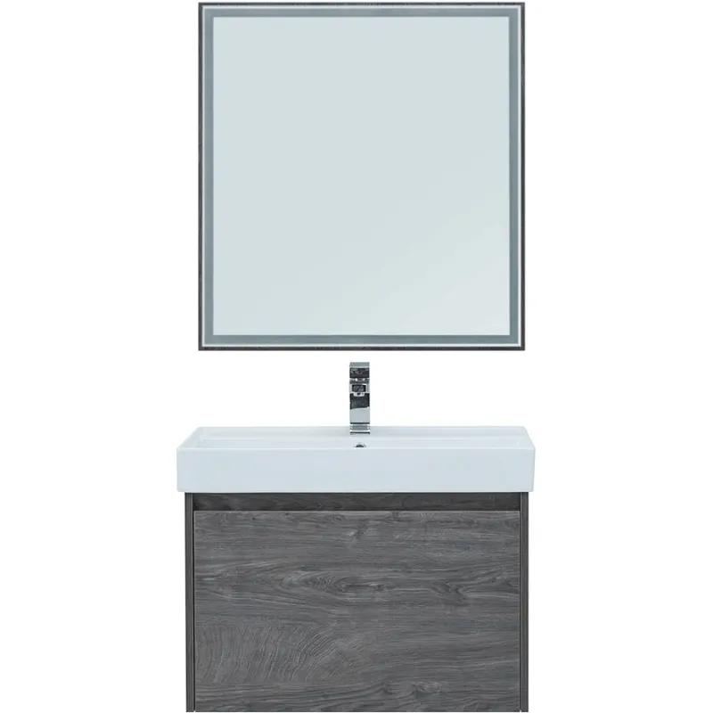 Комплект мебели для ванной Aquanet Nova Lite 75 242295. Цвет: дуб рошелье.Элегантная и комфортная мебель прекрасно дополнит классический интерьер ванной комнаты.Тумба:Материал корпуса и фасада: влагостойкий ЛДСП.Покрытие: ламинат/фактура.Монтаж: подвесной.Размеры тумбы (ШхГхВ): 72,4х44,2х56,5 см.Зеркало:Габариты (ШхГхВ): 75x3,2x80 см.В комплекте поставки: тумба, раковина (фаянс), зеркало.