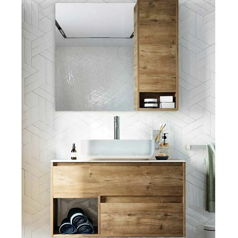 - Материал из ЛДСП и керамогранита: Обеспечивает долговечность и устойчивость к влаге, что особенно важно для ванной комнаты.