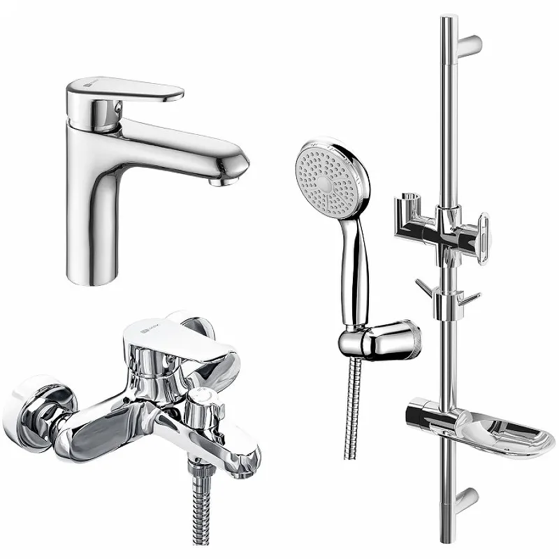 - Качественный материал: Комплект смесителей из латуни с хромированным покрытием отличается устойчивостью к коррозии и долговечностью.