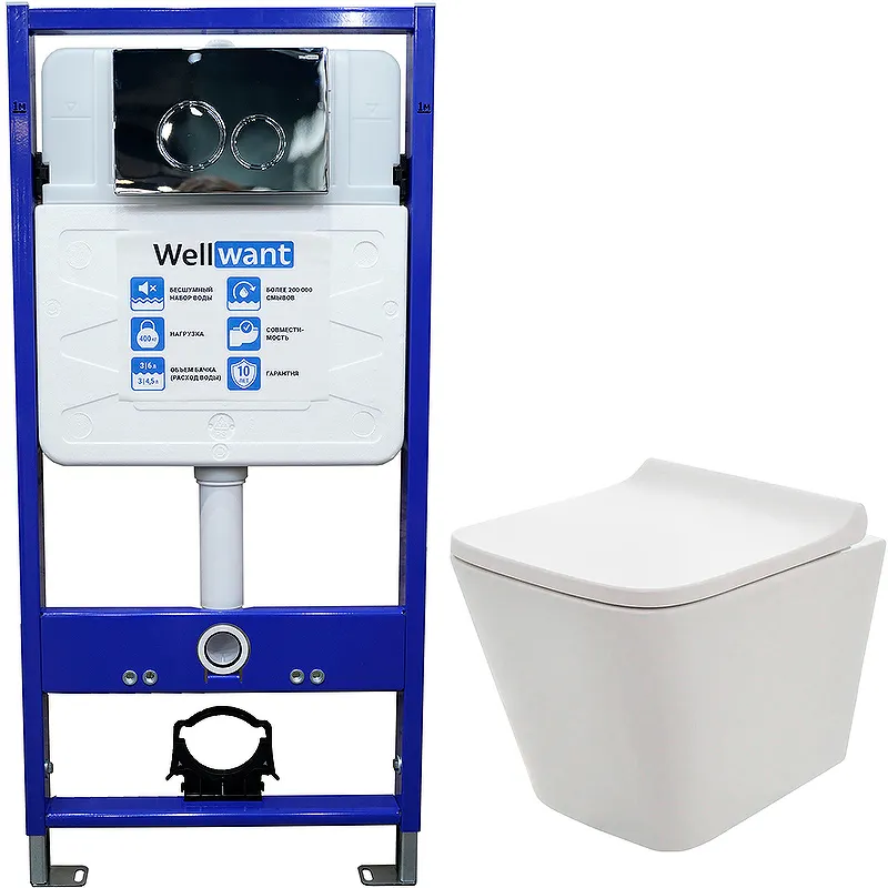 Преимущества Комплект унитаза AQUAme AQM2004 с инсталляцией WellWant Standart 50 WWISI1110B