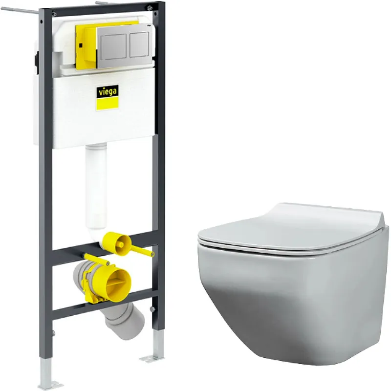 Комплект унитаза beWash Alster 86303201 с сиденьем Микролифт, инсталляцией Viega Prevista Dry 8524.14 792596 и клавишей смыва Хром.Характеристики: Цвет: белый глянец. Материал: фарфор. Габариты (ШхВхД): 390х400х500 мм. Форма: квадратная. Сиденье с функцией Soft-Close (плавное закрытие крышки). Материал сиденья: дюропласт. Монтаж: подвесной. Выпуск: горизонтальный. Организация смывающего потока: душевой слив. Антигрязевое покрытие. Антибактериальное покрытие. Система антивсплеск. Инсталляция:Монтажная рама: Материал: сталь. Габариты (ШхВxГ): 490х1120х120 мм. Объем смывного бачка: 3/6 л. Управление: механическое. Режим слива воды: 2-х объемный. Заводские настройки малого объема смыва: 3 л. Диапазон настройки малого объема смыва: 2 - 4 л. Заводские настройки большого объема смыва: 6 л. Диапазон настройки большого объема смыва: 3.5 - 7.5 л. Расчетная нагрузка до 400 кг. Подвод воды: сзади бачка, сверху бачка. Клавиша смыва: Цвет: хром. Материал: ABS-пластик. Габариты (ШхВxГ): 220х130х8 мм. Двухрежимная клавиша смыва. Управление: механическое. В комплекте поставки: Унитаз с сиденьем beWash Bogen 88303201. Инсталляция с клавишей смыва Viega Prevista Dry 8524.14 792596: монтажная рама; бачок скрытого монтажа 3H; присоединительный комплект для унитаза; крепежный комплект; набор для подключения воды; соединительное колено для унитаза; эксцентриковый переходник DN90/100; клавиша смыва 773236 с установочным комплектом.