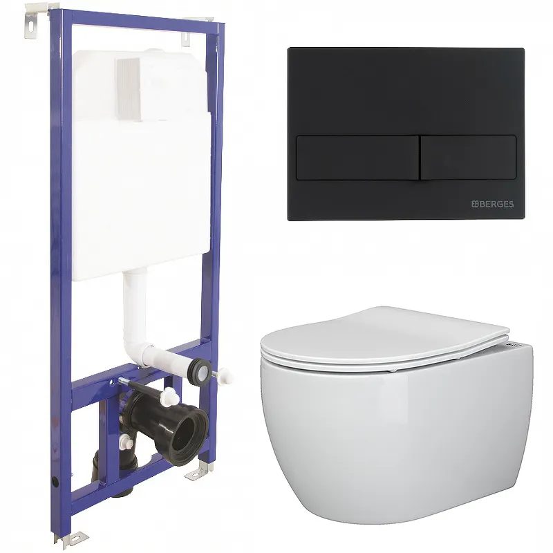 Подвесной унитаз с сиденьем Микролифт Ceramicanova Play CN3001 с инсталляцией Berges Novum L5 040215.Характеристики: Подвесной унитаз Ceramicanova с современным лаконичным дизайном. Цвет: белый. Материал: санфаянс. Специальное покрытие позволяет сохранять первоначальный вид на протяжении всего срока службы. Высокая стойкость к влаге, запахам и грязи. Выпуск: горизонтальный, в стену. Монтаж: подвесной. Размеры (ШхВхД): 370х340х490 мм. Плавное и бесшумное сиденье Soft Close с фунцией Микролифт. Цвет сиденья: белый. Материал сиденья: дюропласт. Инсталляция Berges Novum L5 040215 с клавишей смыва. Монтаж: встраиваемая перед стеной. Антикоррозийное покрытие. Глубина бачка: 80 мм. Подключение воды: сверху. Экономичный двурежимный смыв: 3/7 литров. Механическая клавиша смыва черного цвета с покрытием Soft Touch. Материал клавиши: пластик. Габариты инсталляции (ШхВхГ): 525х1390х175 мм. Размеры клавиши смыва (ШхВхД): 226х165х11 мм. В комплект
