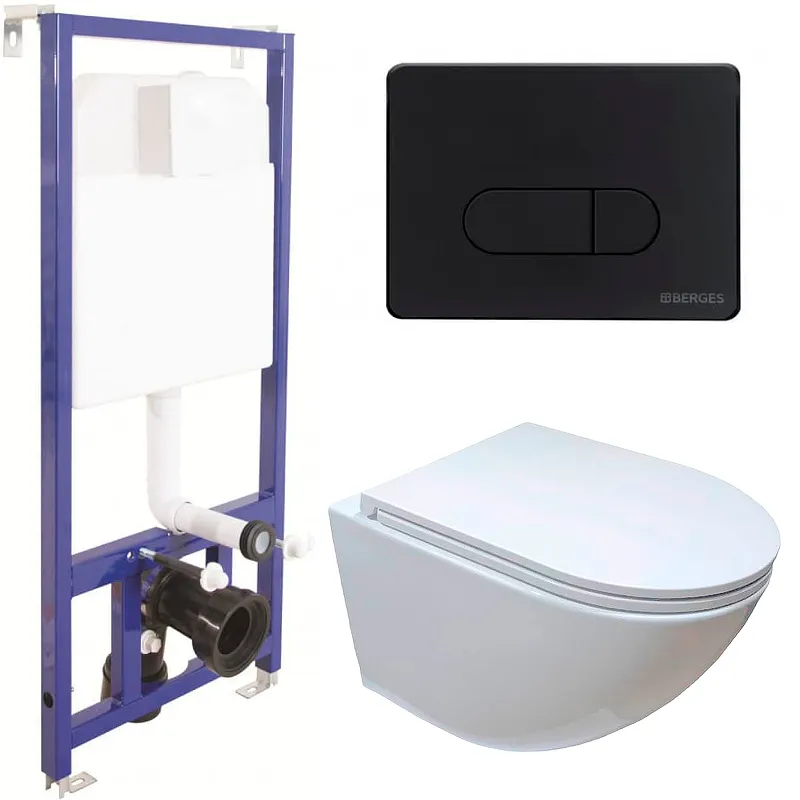 - Инсталляция со смывным бачком и черной матовой клавишей смыва Berges Novum D5 040235