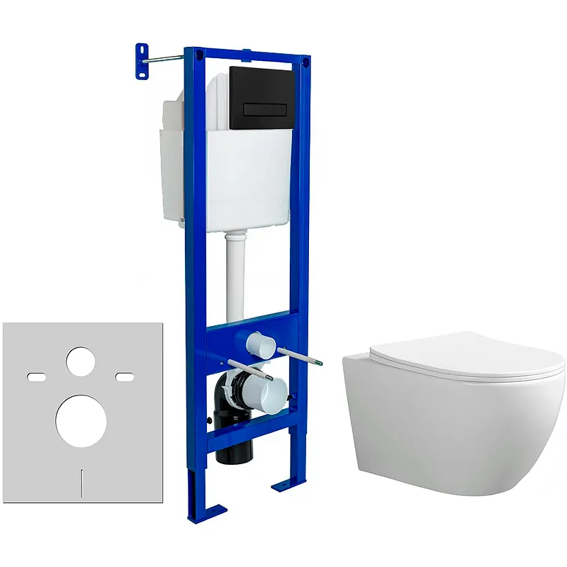 Комплект унитаза Ceruttispa Orlter Aria Tornado CT9955 с инсталляцией Berges Atom 410 040340 с сиденьем Микролифт и Черной матовой клавишей смыва