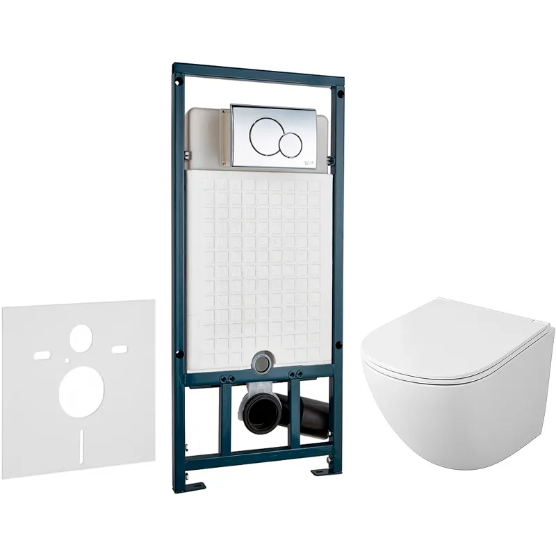 Комплект унитаза Owl 1975 Vind Cirkel-H TOWLT190302 с сиденьем Микролифт и инсталляцией WeltWasser WW Marberg 507 10000005949+10000005952 с клавишей смыва Хром глянцевый