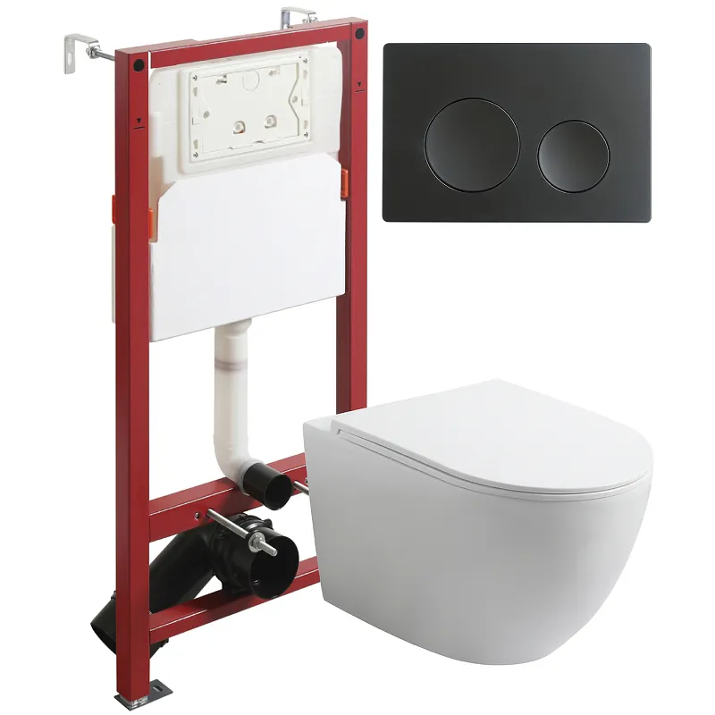 Комплект унитаза с инсталляцией Agger ATI07150+APB144 с сиденьем Микролифт и Черной матовой клавишей смыва