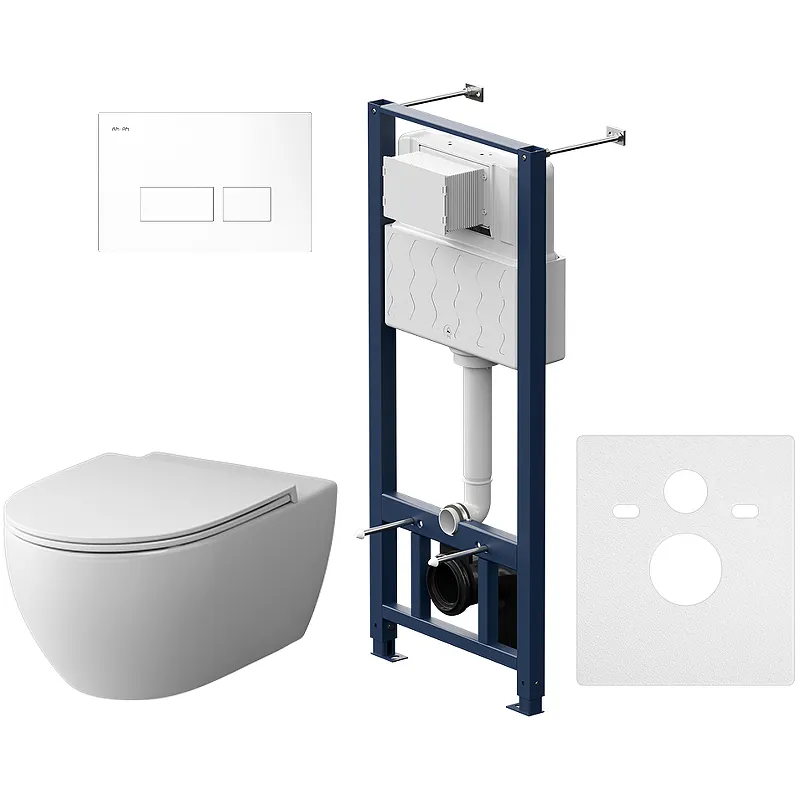 - Эстетичный дизайн: Безободковая конструкция с белой глянцевой клавишей смыва идеально впишется в любой интерьер.