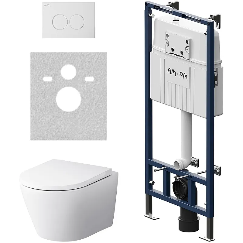 Комплект унитаза с инсталляцией AM.PM Sense FlashClean IS100101.741701 с сиденьем Микролифт и Белой глянцевой клавишей смыва
