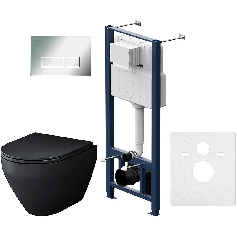 - Современный дизайн: Черный матовый цвет и овальная форма унитаза придают ему стильный и элегантный вид.