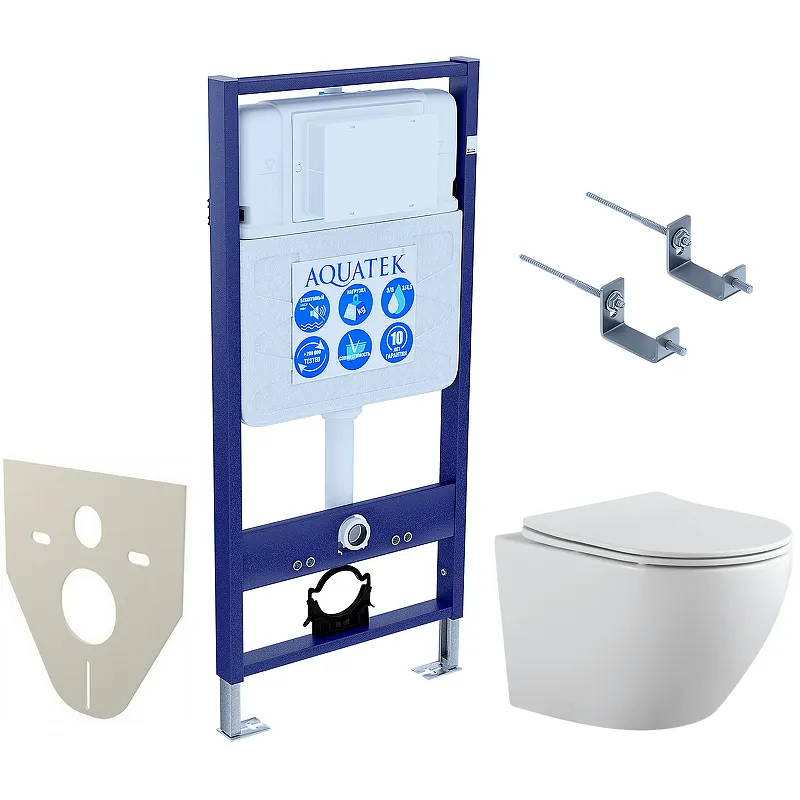 Купить комплект унитаза с инсталляцией Aquatek — это разумный выбор для современного и удобного обустройства ванной комнаты.