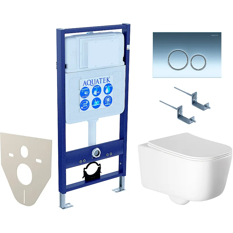Купить комплект унитаза с инсталляцией Aquatek — это вложение в качество и удобство. Подходит для легких и несущих стен, обеспечивая надежность и долговечность.
