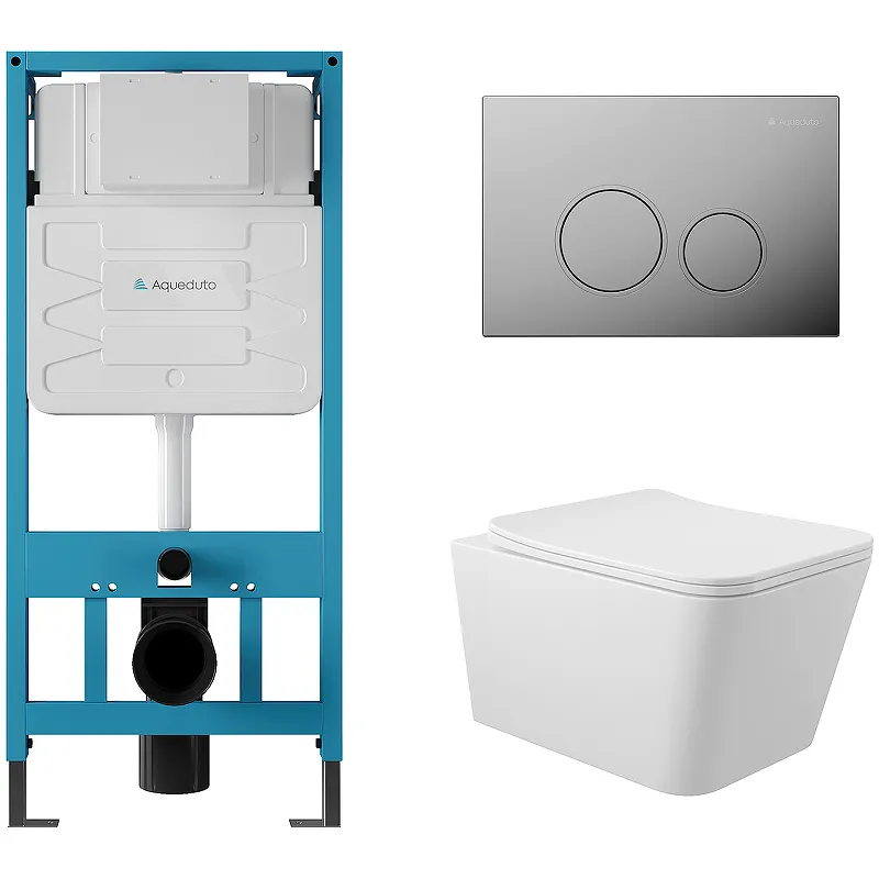 Комплект унитаза с инсталляцией Aqueduto Macio AQDS009 с сиденьем Микролифт и клавишей смыва Хром