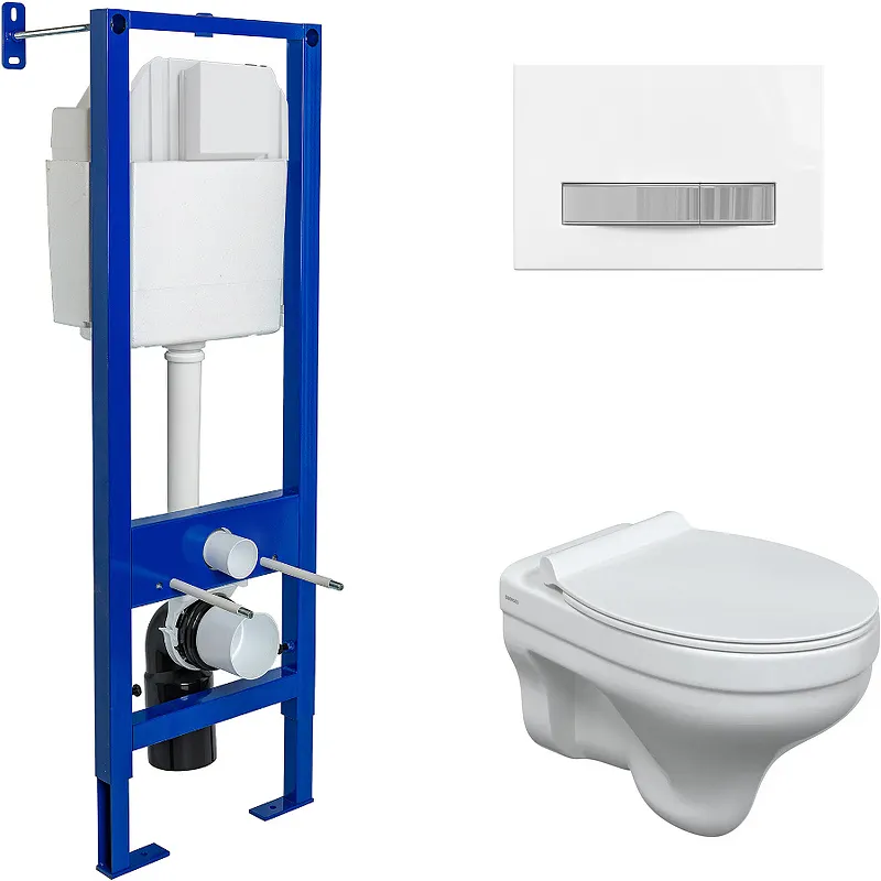 - Комплект унитаза с инсталляцией: Полная комплектация для удобной установки, включая инсталляцию и клавишу смыва.