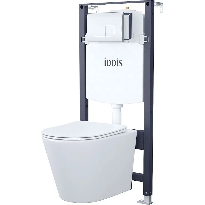 Комплект унитаза с инсталляцией Iddis Basic BASC010i73 с сиденьем Микролифт и клавишей смыва Хром.Комплект состоит из подвесного унитаза Calipso (CALRDSEi25), инсталляции Profix (PRO0000i32) с двухуровневой арматурой и хромированной клавиши смыва (OPH10G0i77).Унитаз Calipso современного минималистичного дизайна имеет безободковую конструкцию чаши и сиденье с микролифтом и функцией быстрого снятия, что делает его гигиеничным и удобным в уборке. Идеально впишется в любой интерьер благодаря компактным размерам.Надежная цельная стальная рама инсталляции имеет возможность регулировки по высоте и подходит для монтажа в любых, в том числе узких, пространствах.Характеристики:Унитаз: Цвет: белый. Материал: сантехнический фарфор. Размеры (ШхВхД): 365х365х515 мм. Безободковая конструкция. Направление выпуска: горизонтальный (в стену). Сиденье из дюропласта с плавным опусканием крышки (микролифт), быстросъемное. Монтаж: подвесной. Инсталляция: Цвет рамы: синий. Рамный блок из прочной стали с порошковым покрытием. 2-хуровневая арматура. Бачок из ABS-пластика. Общая высота рамы: 1140 мм. Ширина: 497 мм. Глубина: 260 мм. Настраиваемый впускной клапан. Уплотнительная прокладка из силикона. Возможность регулировки конструкции по высоте и глубине. Двойной режим слива: 3/6 л. Объем смывного бачка: 7 л. Межосевое расстояние под крепёжные шпильки: 180/230 мм. Клавиша смыва: Цвет: хром. Материал: пластик. Габариты (ШхВхГ): 245х165х35.7 мм. Управление: механическое. Режим слива воды: двухрежимный. В комплекте поставки: Унитаз Iddis Calipso CALRDSEi25. Крышка-сиденье. Инсталляция Iddis Profix PRO0000i32. Клавиша смыва Iddis OPH10G0i77. Комплект креплений. Паспорт изделия.