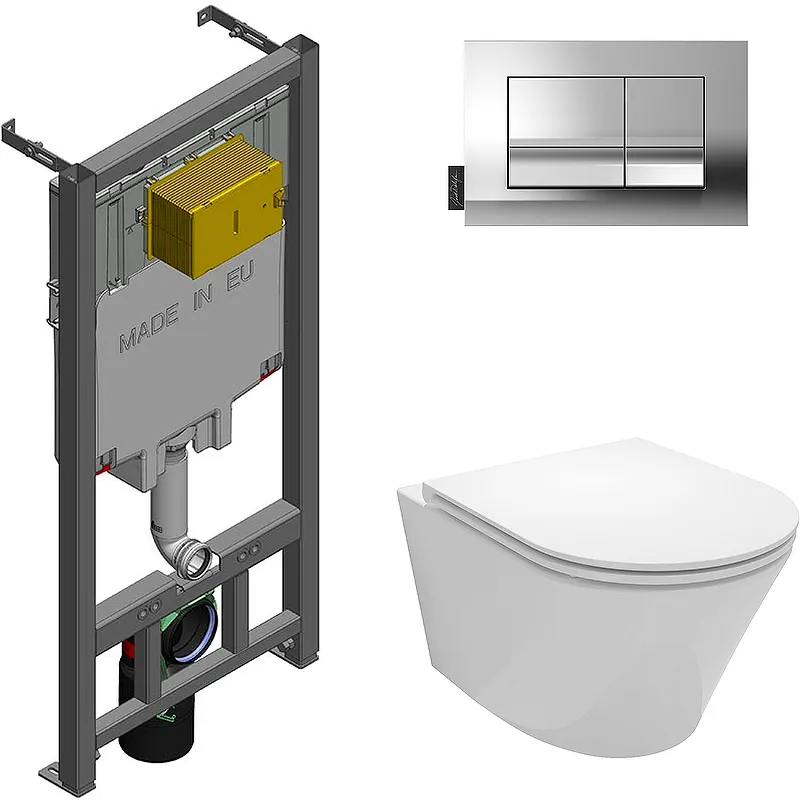 Комплект унитаза с инсталляцией Jacob Delafon Rodin+ E21749RU-00 с сиденьем Микролифт и клавишей смыва Хром