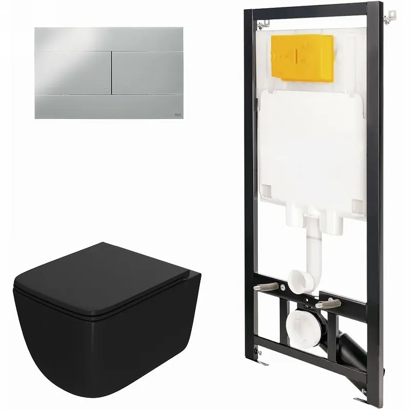 Комплект унитаза с инсталляцией Point Меркурий 886914SIOO+PN41831BM Черный матовый с сиденьем Микролифт и клавишей смыва Хром глянцевый