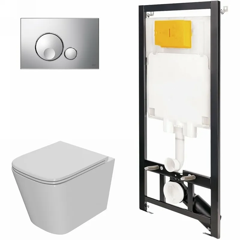 Комплект унитаза с инсталляцией Point Ника 886914GBOO+PN41081 с сиденьем Микролифт и клавишей смыва Хром глянцевый