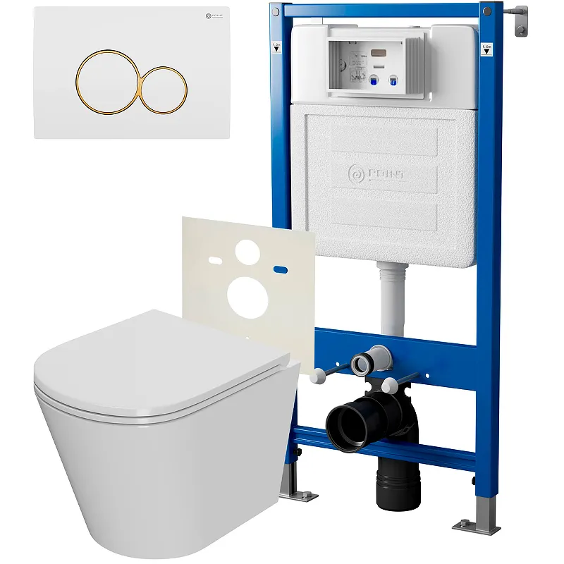 Комплект унитаза с инсталляцией Point Виктория PN48068WG с сиденьем Микролифт и Белой Золото клавишей смыва