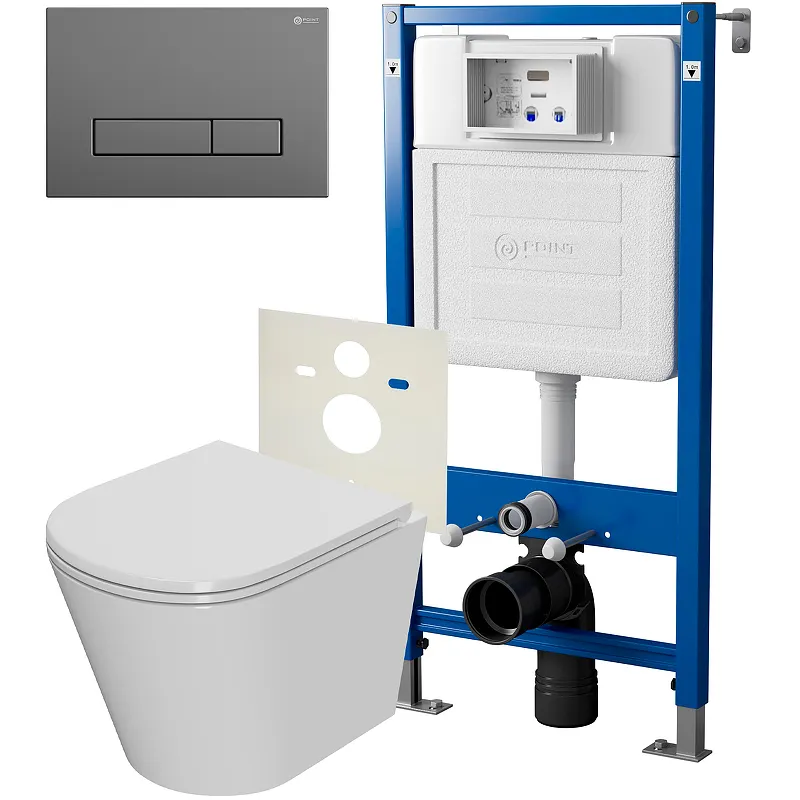 Преимущества Комплект унитаза с инсталляцией Point Виктория PN48072GM с сиденьем Микролифт и клавишей смыва Графит