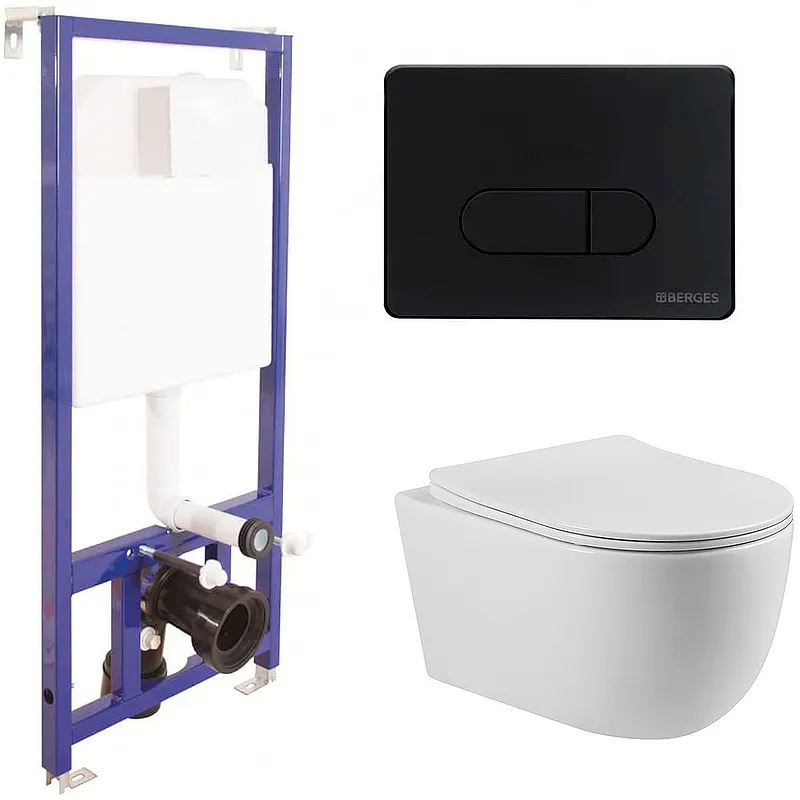 Комплект унитаза Vincea Evo Rimless VT1-34S с инсталляцией Berges Novum D5 040235 с сиденьем Микролифт и Черной матовой клавишей смыва