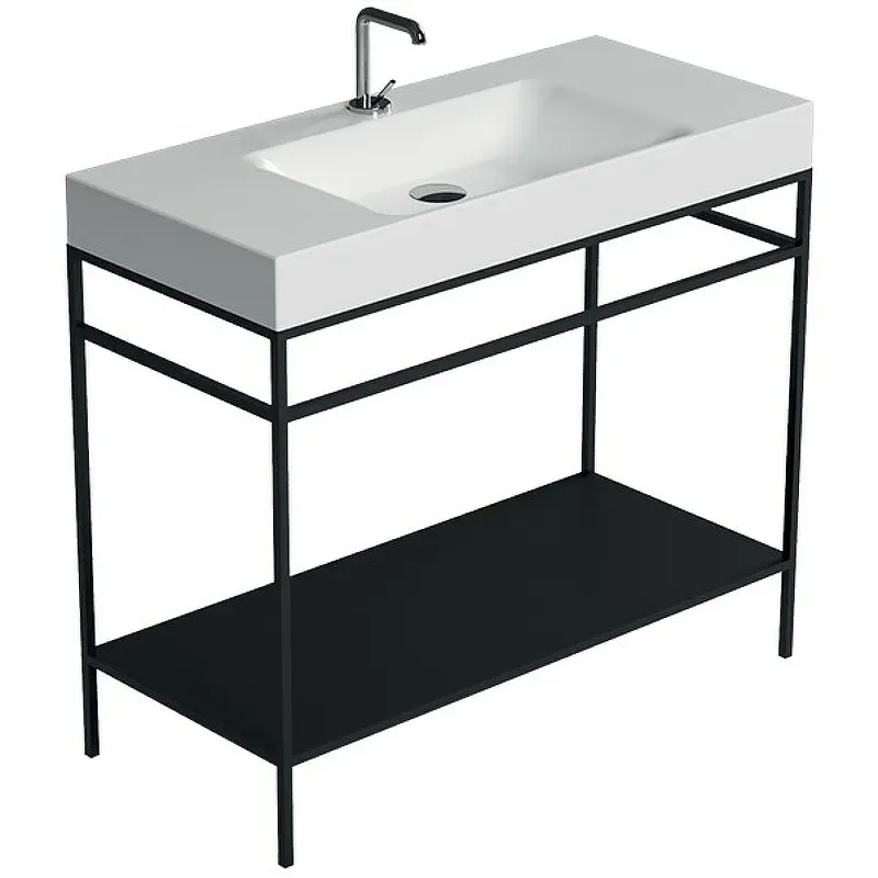 Консоль под раковину Kerasan Cento 100 924431 с полкой.Характеристики: Цвет: черный матовый. Размеры (ШхВхГ): 1000х780х440 мм. Материал: металл. Монтаж: напольный. С металлической полкой. В комплекте поставки: консоль под раковину.