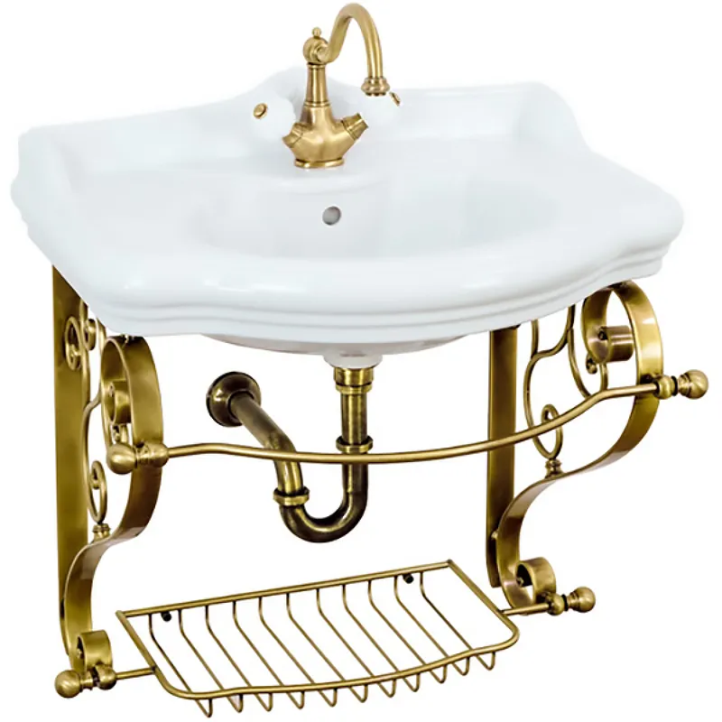 Консоль под раковину Migliore Bella 73 20702.Характеристики: Цвет: бронза. Материал: латунь. С полотенцедержателем. Система хранения: полка корзина. Размер (ВхШхГ): 70x73х54 см. Монтаж: подвесной. В комплекте поставки: Консоль под раковину.