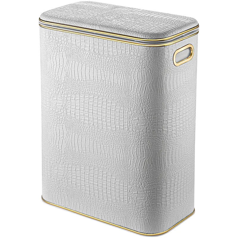 Корзина для белья Geralis KWG-B Croco Белая, кант Золото, стандартная