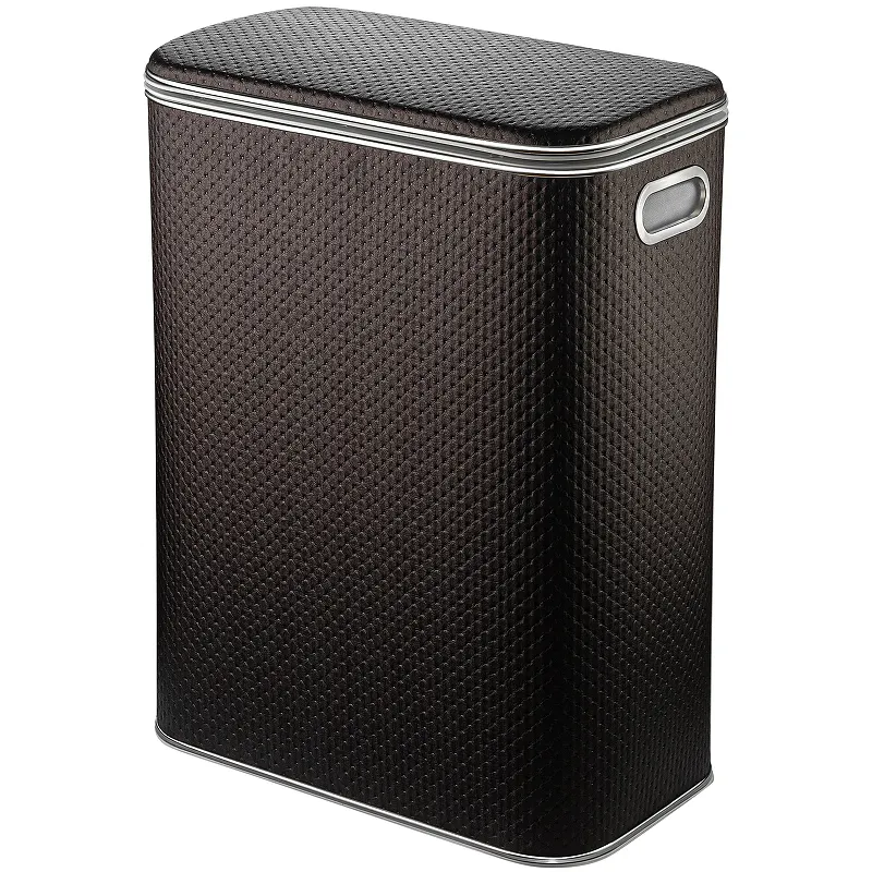 Корзина для белья Geralis PCH-B Punto стандартная.Характеристики: Цвет: шоколад. Кант: хром. Материал: экокожа, ABS-пластик. Габариты (ШхВхД): 450х600х250 мм. Объем: 67 л. Плавное закрывание крышки. Ручки для переноски. Выдерживает вес до 100 кг. Монтаж: напольный.