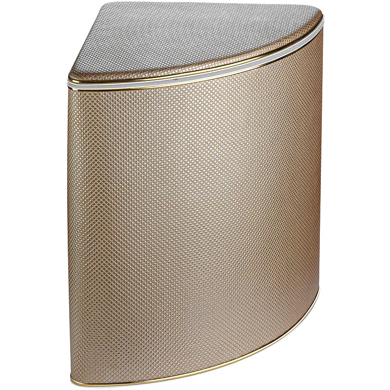 Корзина для белья Geralis RBG-U Ромб угловая.Характеристики: Цвет: бежевый темный. Кант: золото. Материал: экокожа, ABS-пластик. Габариты (ШхВхД): 410х600х410 мм. Объем: 57 л. Плавное закрывание крышки. Ручки для переноски. Выдерживает вес до 100 кг. Монтаж: напольный, угловой.